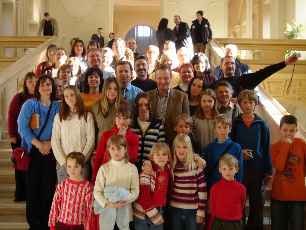 IvanS blížícími se volbami nám Zuzka Jelenová nabídla možnost prohlídky jinak nepřístupného Černínského paláce, dokud tam ještě je ona i pan ministr. Teda on tam nějaký ministr bude i po volbách, ale třeba jiný a s jinými lidmi. Byl navržen termín, zájem docela slušný a tak jsme se v sobotu po plese sešli v hojném počtu. Zuzka nás uvítala, řekla nám něco o paláci a pak už nás provázel pan ministr Cyril Svoboda. Řekl nám například, proč při přijetí velvyslanců on vždy sedí pod gobelínem a velvyslanec vedle a jak to udělat, když při jídle něco nechce nebo chce dolít třeba víno a ne pivo. Věnoval nám 4x více času než je norma pro přijetí zahraničních návštěv a ukázal nám všechny sály i byt Jana Masaryka s historickou pracovnou a koupelnou, ze které „byl vypadnut“ z okna. Rozdávaly se podpisy, fotografovalo se a na závěr jsme se občerstvili v hudebním salonku. Děkujeme, panu ministrovi za přijetí i Zuzce za zprostředkování netradiční návštěvy.